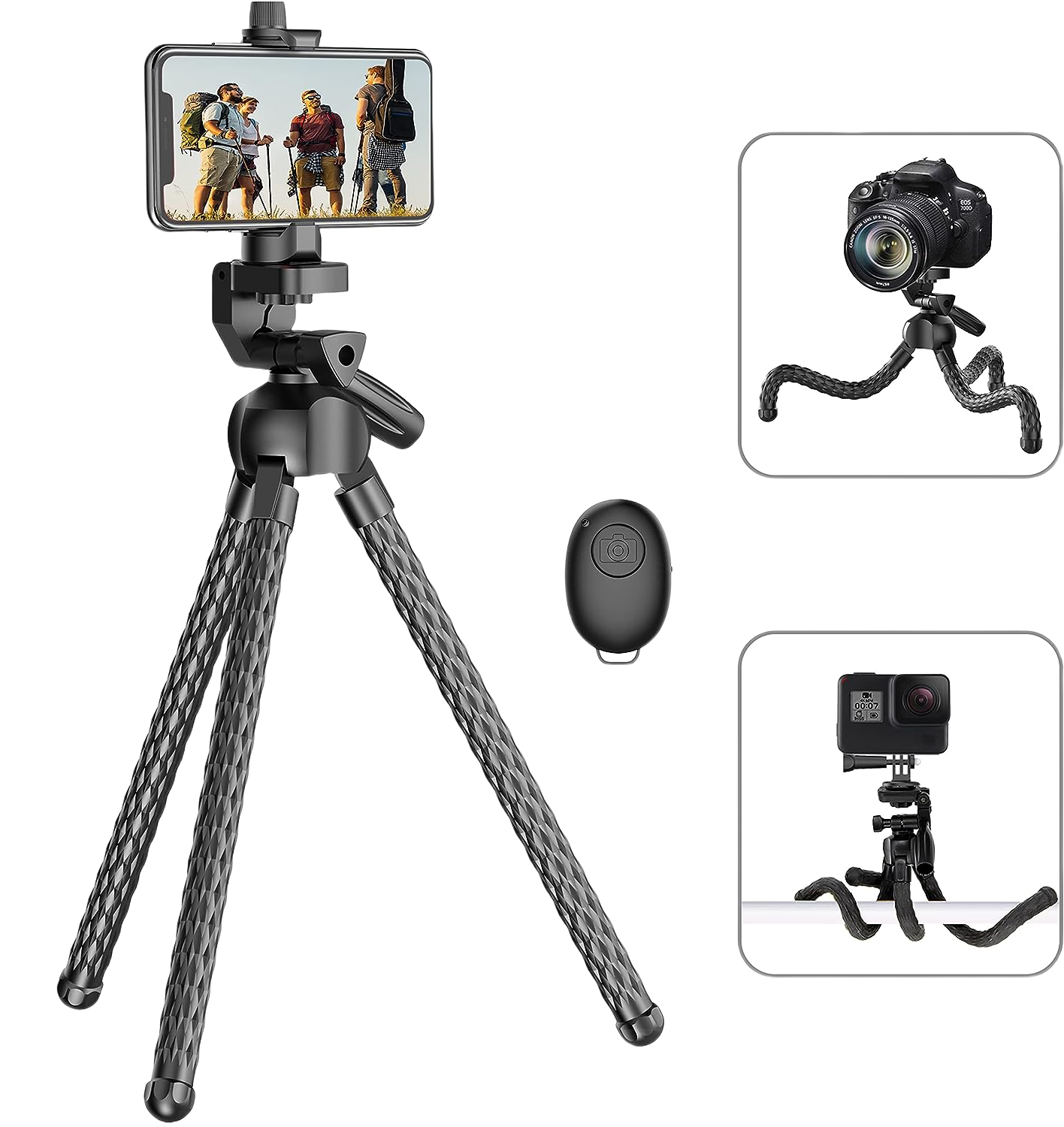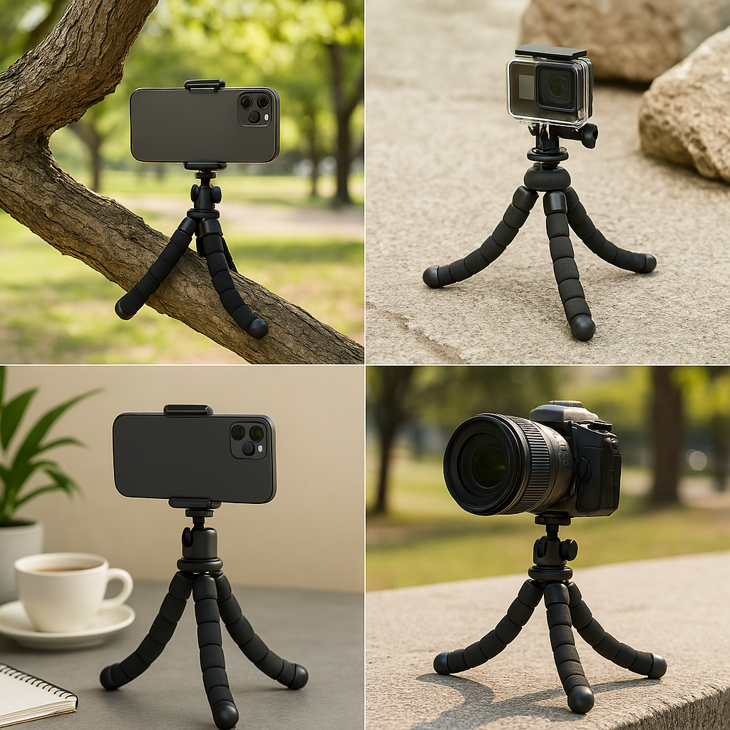 Our adjustable tripod easily fits your phone, camera, or GoPro — perfect for vlogging, travel, and everyday photography.